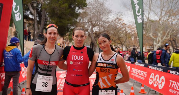 En chicas Xisca Tous (Isbilya-Sloppy Joes) ha mostrado su autoridad haciendo la carrera en solitario desde el inicio. Por detrás un grupo de 5 triatletas se ha disputado el resto de posiciones en el podio. Chlóe Serra (Niuwave Bicicletes) cogía ventaja en el segmento de ciclismo, un segmento que debido a la lluvia se ha vuelto peligroso y en el que ha habido varias caidas. La Tercera posición ha sido para la atleta del Xtrem Calviá, Nora Romero.