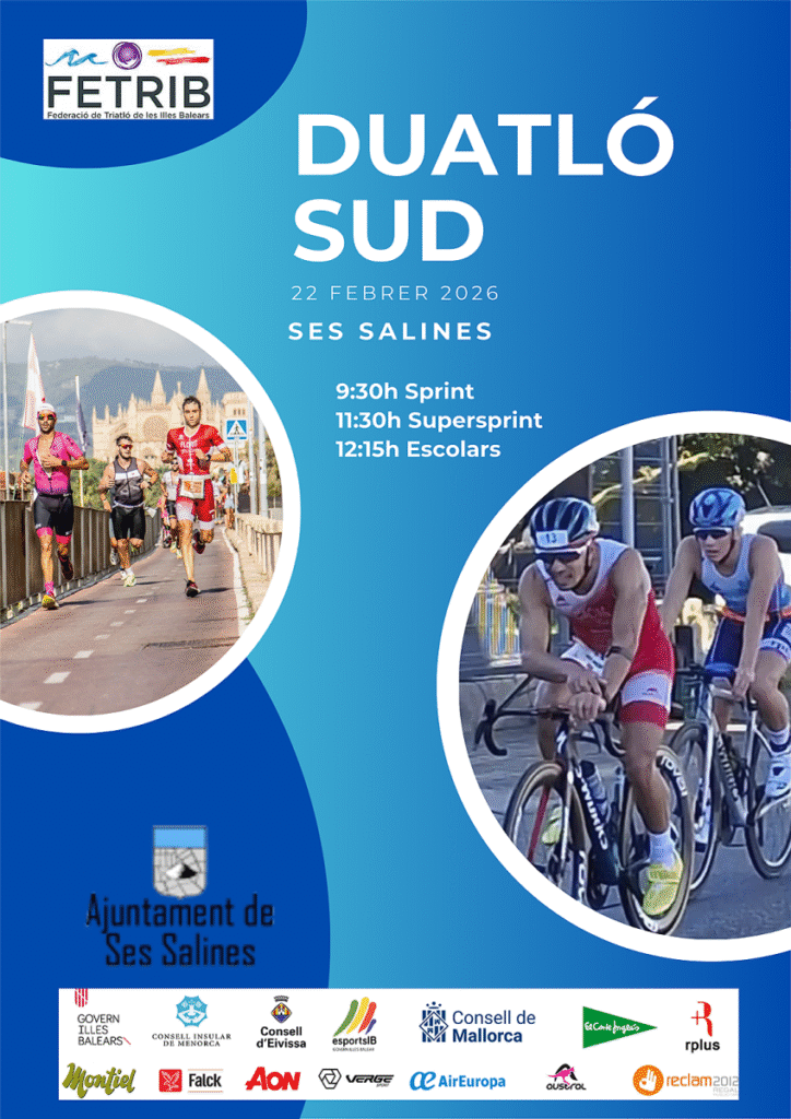 Després de la obligada suspensió del darrer curs, el Duatló SUD torna amb força i obre inscripcions aquest dimarts 27 de gener. La Colònia de Sant Jordi (Ses Salines) acollirà el proper 22 de febrer la sisena edició d’un esdeveniment que reunirà a desenes de participants en la primera prova individual de l’any 2026 a les Illes Balears.